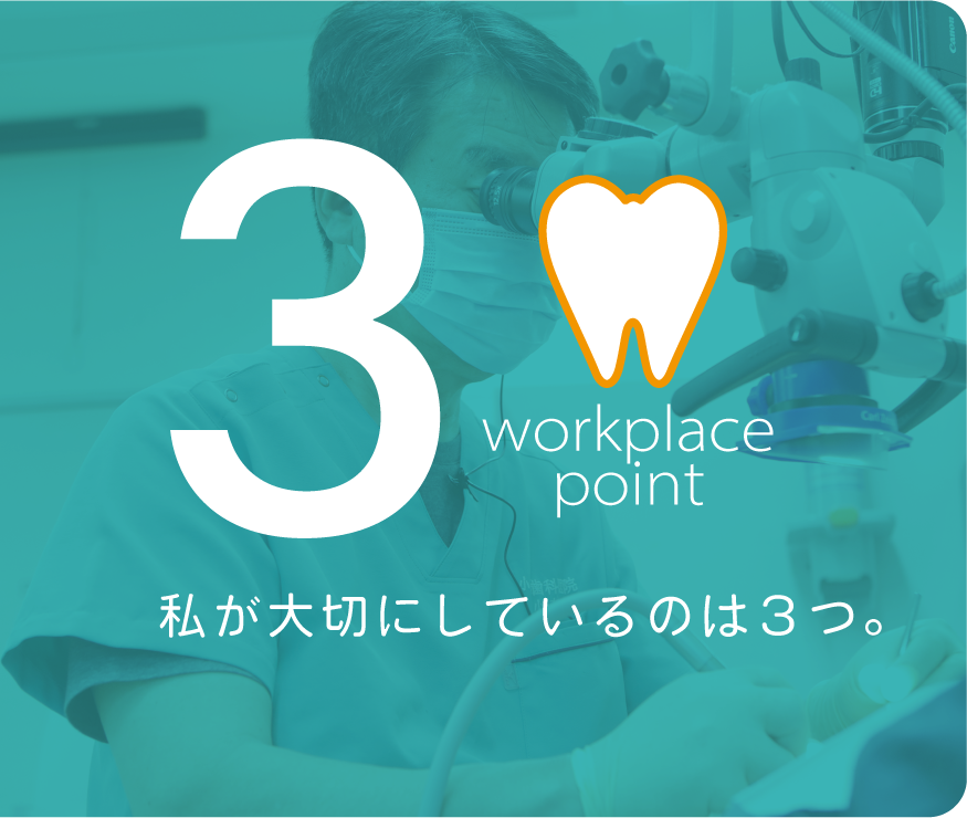 医療は日進月歩、 どの世代のどの先生が診ても正確 で患者想いのある新しい治療をしていこうと考えています。その為に必要な患者数、 学ぶ時間、 学ぶ環境、 そして順調な経営などを叶えてきました 。こうした 歯科医師としてのキャリアの幅を広げられ る環境を次代の歯科医師の先生の成長に役に立てればと思います。 ぜひ、お会いすることを楽しみにしています。